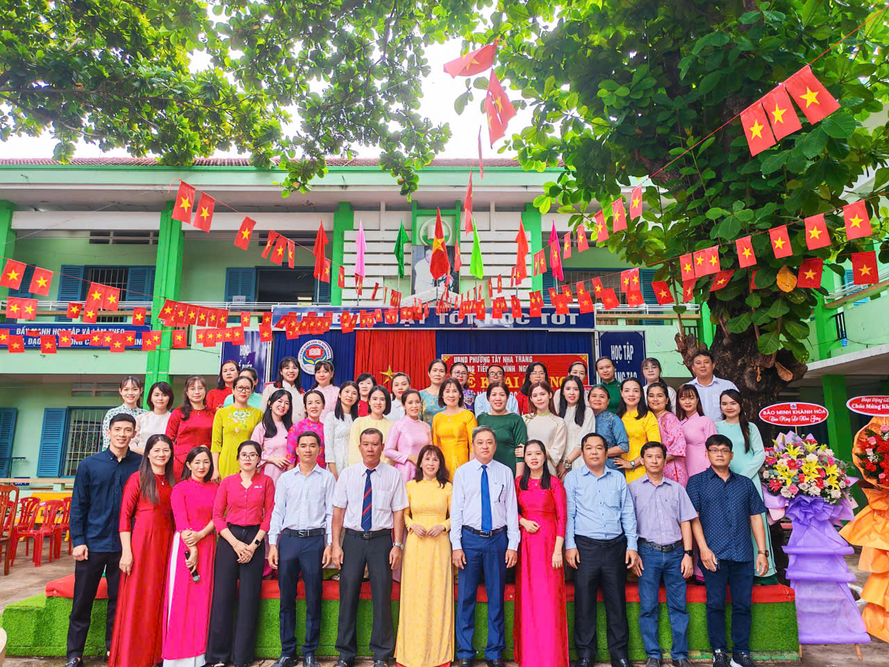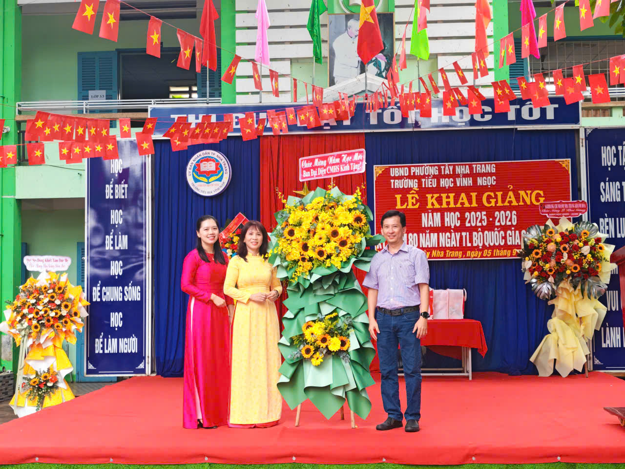 • Tặng hoa chức mừng năm học mới của lãnh đạo UBND Phường Tây Nha Trang, Ban Đại Diện CMHS.