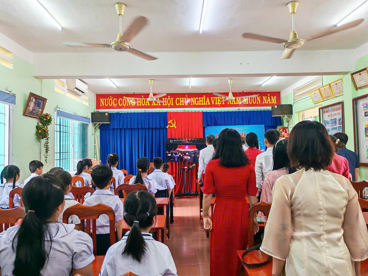 • Phát biểu của lãnh đạo nhà trường: Cô Nguyễn Thị Ngân Hà – Bí thư Chi Bộ- Hiệu Trưởng.