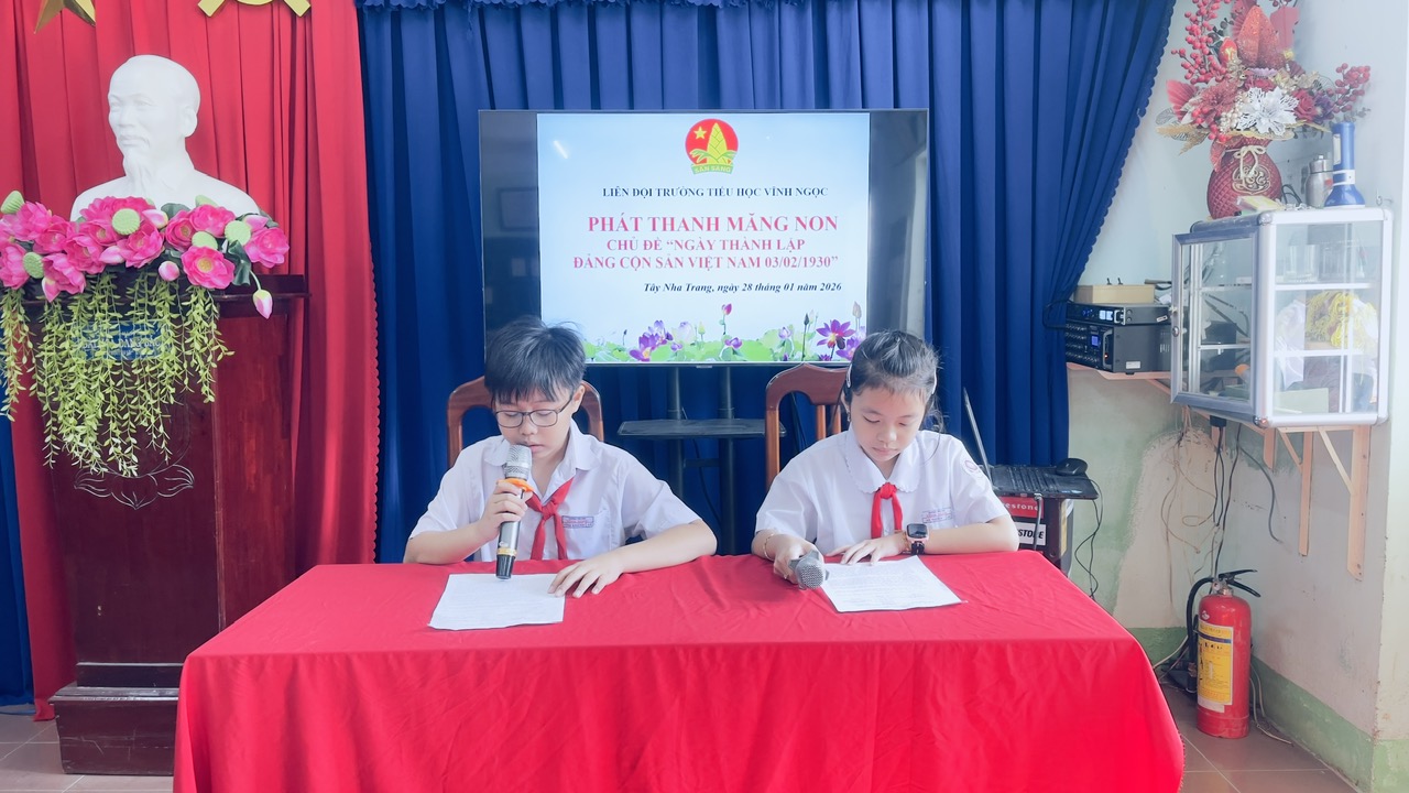 Thứ Tư, ngày 28 tháng 01 năm 2026 Liên đội Trường Tiểu học Vĩnh Ngọc thực hiện phát thanh măng non chào mừng kỷ niệm 96 năm ngày thành lập Đảng cộng sản Việt Nam.
